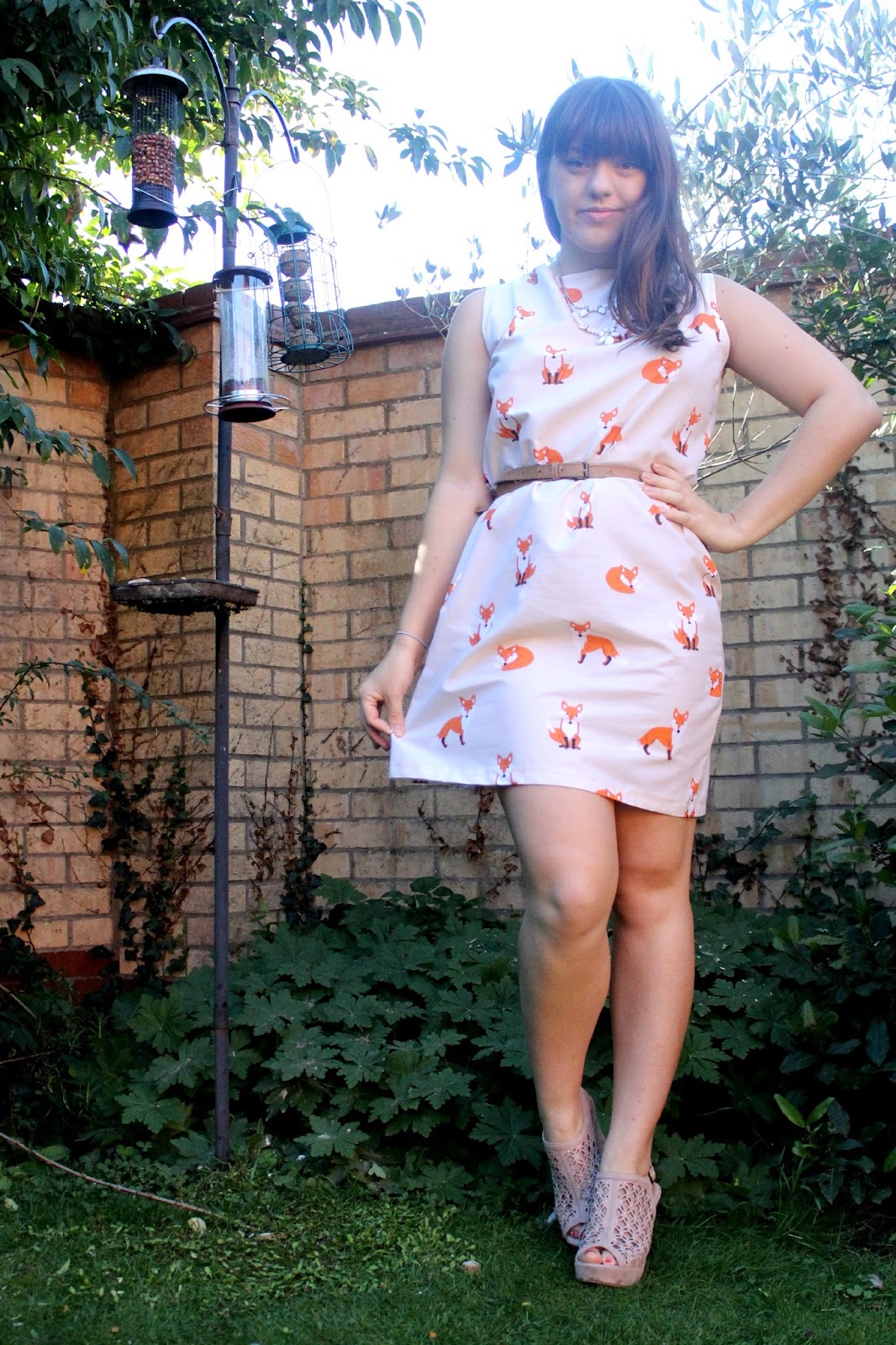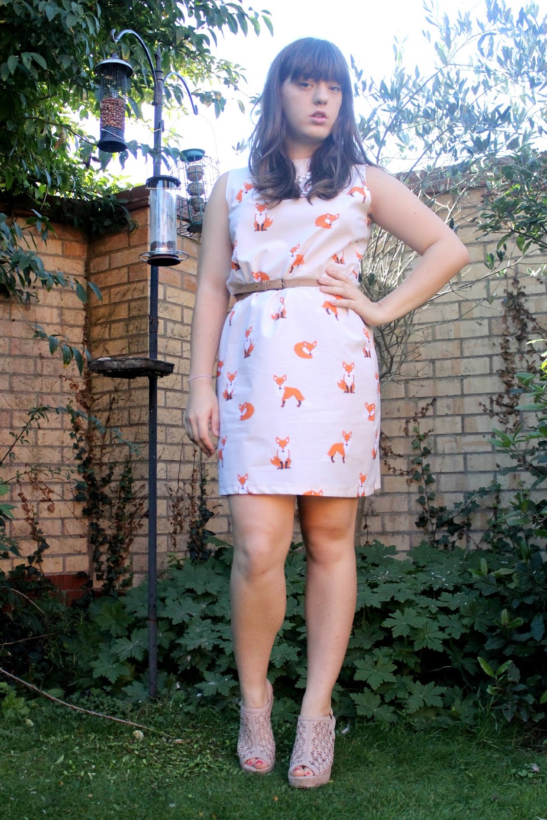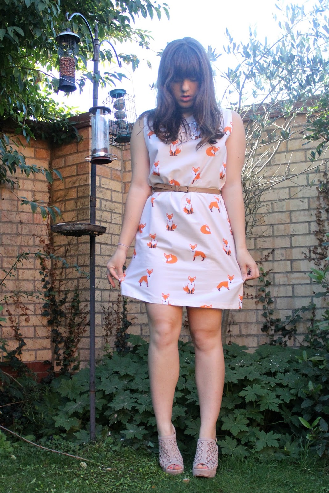 I decided to make a simple shift dress, without the need to include a zip or buttons. I say ‘simple’ but it wasn’t quite as easy as I thought. With the help of my Mum and after recutting a couple of sections so the foxes weren’t upside down, we managed to sew something that resembled a dress. Now, I must admit, that I feel a little like Dobby in his pillowcase as the measurements somehow came up much bigger than we expected. However, for today’s photos I cinched in my waist with a tan belt and added some heels to lengthen my legs. Hopefully, it’s only because I know it’s a duvet that I’m a little self-conscious and nobody else can tell! What do you think?