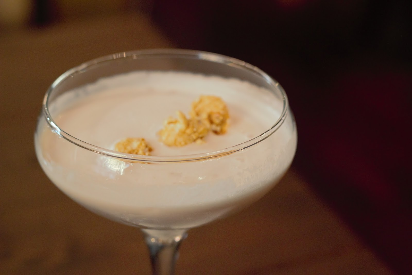 Firstly, the decor of the place is amazing. Think exposed wood, luxurious upholstering and a cosy yet opulent atmosphere. There are phone chargers and USB ports at every table, which saved my dying phone battery, and a great range of tables for all sizes of groups. I started the evening with a Peanut Butter and Jelly Cocktail; how could I have resisted? It was creamy, strong and tasty – and topped with popcorn, just to make it ever better!